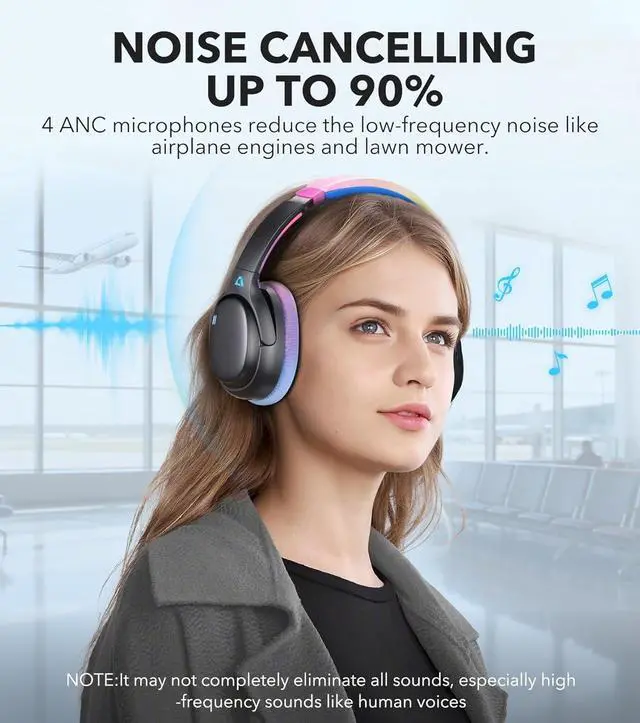 HYBRID ACTIVE NOISE CANCELLINGThe wireless noise cancelling headphones use four ANC microphones to reduce up to 90% of ambient noise, especially low-frequency sounds such as airplanes and car engines, and electric lawnmowers. Block out the world and immerse yourself in your music. Switch to transparency mode instantly to stay aware of your surroundings