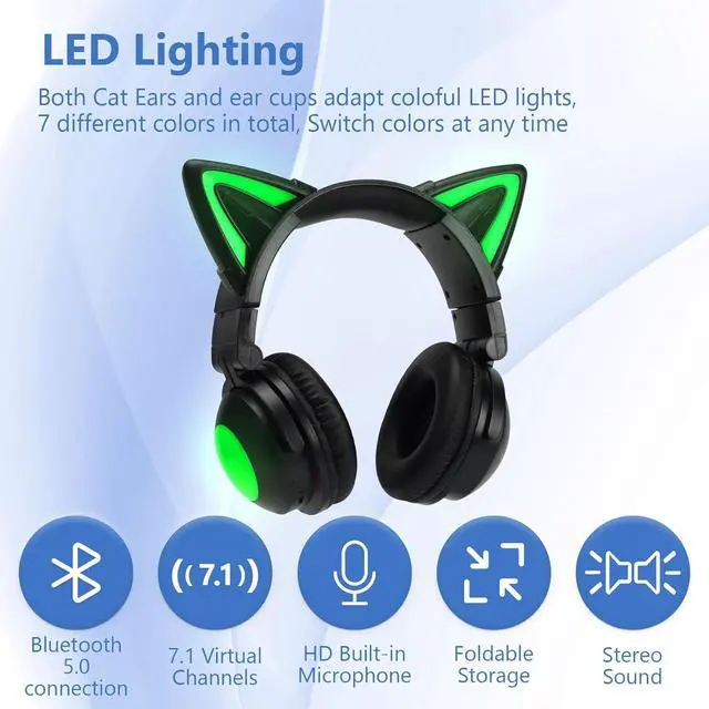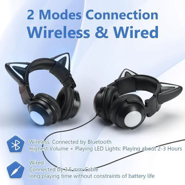 Cute Design & Flashing Led Lights: Elevate your style with these cat ear Bluetooth headphones featuring adjustable colorful LED lights. Whether you' re traveling or enjoying outdoor activities, the shinning cat ears and earcups will make you look stylish and attractive. Please note that the LED lights and built-in microphone only work in " Bluetooth" mode, not in " wired" mode.