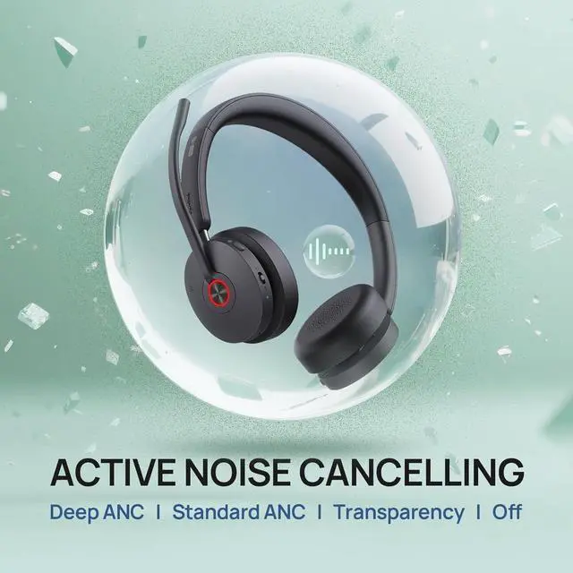 Active Noise Cancellation Headset (ANC): 4 smart modesDeep ANC, Standard ANC, Transparency, and Off in various scenarios. 6-mic headphone system with AI Acoustic Shield Tech 3.0 delivers hybrid ANC and uplink noise cancellation, blocking mid- and low-frequency noise for clear focus