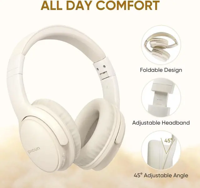 Lightweight & Comfort: Only 5.7 oz, offer you pressure-free comfortable. Memory foam cushions with soft protein leather cover and adjustable headband fit snugly over your ears. Foldable design, convenient to carry and store. Perfect choice for work, study, travel