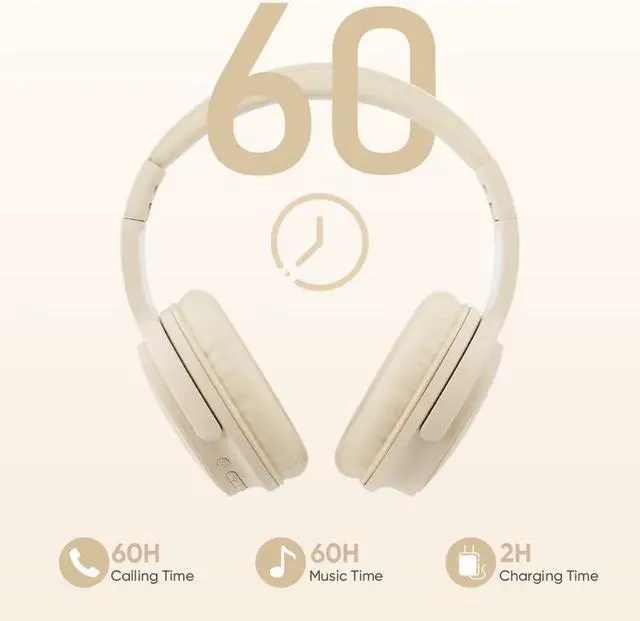 60H Playtime: Equipped with a long-lasting battery, this Bluetooth headset lasts about 60H. With a 3.5 mm audio cable, it fits all kinds of PCs and desktops, bringing convenience to remote meetings or online teaching