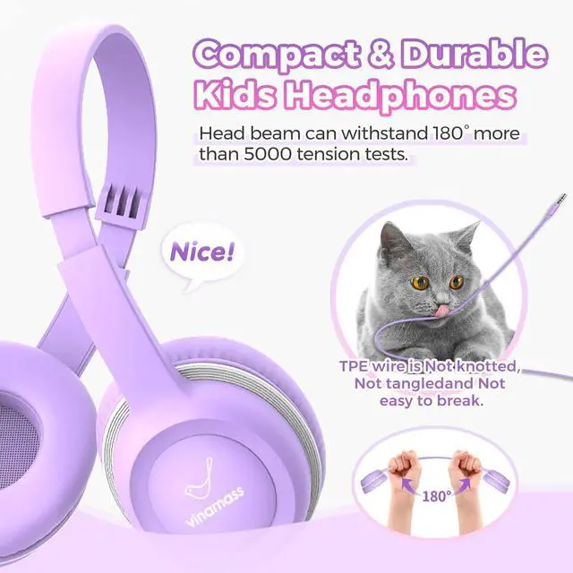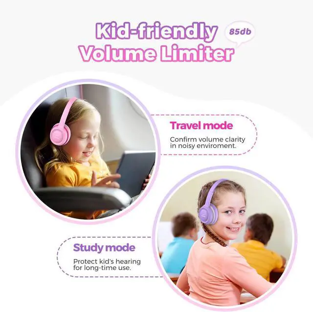 Kids: The A63 kids headphones is built-in fixed safe sound volume limitation levels set to 85dB, satisfy the WHO recommended limit level to prevent hearing damage. There is no need to worry about hearing damage for your children, even without parental monitoring and surveillance. Parents can leave children alone in the music world trustingly. Help your kids love what they listen to at a safe volume for different environments or tasks.