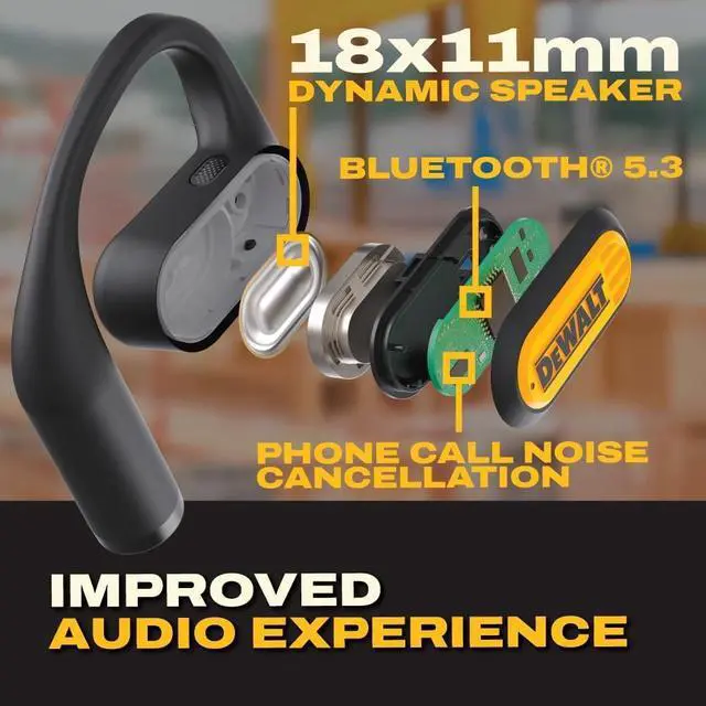 Jobsite-Safe Open Ear Design: Air conduction headphones technology directs sound toward your ear canal while keeping your ears open to surrounding noise stay alert and safe on the jobsite or outdoors with open earbuds