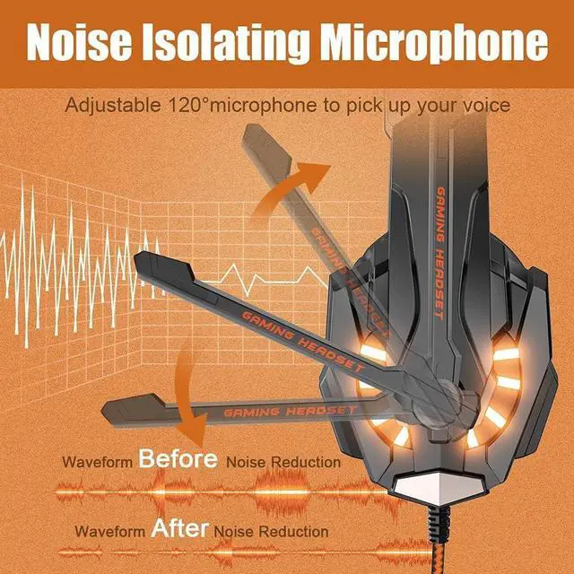 NOISE ISOLATION MICROPHONEHeadset integrated onmi-directional microphone can transmits high quality communication with its premium noise-concellng feature, can pick up sounds with great sensitivity and remove the noise, which enables you clearly deliver or receive messages while you are in a game. Long flexible mic design very convenient to adjust angle of the microphone.