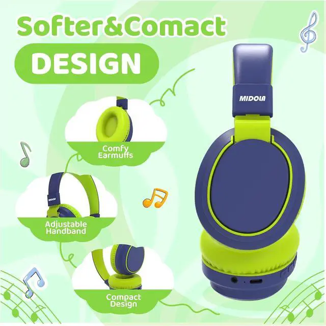 Volume Limit ProtectionMidola Kid' s headphones use 74/85/94dB 3-stage safe volume, one-click protection (press db button to switch) for hearing health: 74dB mode for 3-6 years old, 85dB meets school-age children, 94dB requires parental supervision.