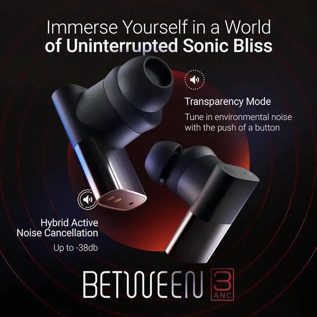 Cutting-Edge Active Noise Cancellation: These wireless earbuds boast an advanced ANC technology with three adjustable modes: Transparency, Noise Cancellation, and Ambient. This allows users to customize their listening experience according to their environment, whether they' re in a bustling city or a quiet room. The Between 3ANC efficiently blocks out unwanted noise, ensuring an immersive and distraction-free audio experience