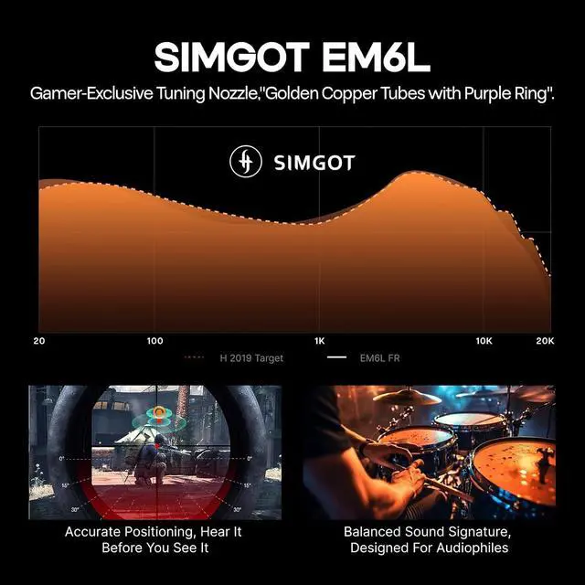 Unlock audio and gaming perfection with our versatile SIMGOT EM6L earbuds. Tuned to the H-2019 curve, SIMGOT EM6L flawlessly reproduce audio with accurate soundstage positioning and imaging, excelling in both gaming and music playback. Dynamic low-frequency response ensures precise positioning, while spatial sound effects create an immersive experience. With outstanding noise isolation, enjoy a private cinema-like audio adventure. Gain a competitive edge and elevate your gaming with our extraordinary headphones. Redefine excellence in 3D audio bliss.