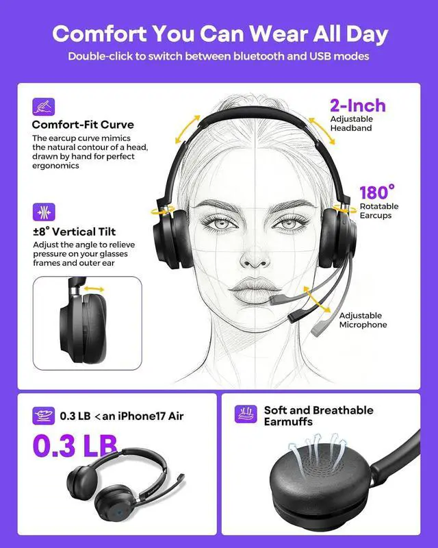 2-Year Worry-Free Warranty: Our wireless headsets come with a robust 2-year warranty, making them the reliable choice for call centers, remote teams, and on-the-go professionals. Should any issues arise, you can contact us directly through. We promise a swift response and resolution, ensuring your workflow remains seamless and uninterrupted.