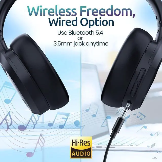 HI-RES AUDIO THAT CAPTURES EVERYTHING: It shouldnt matter whether you are traveling on a plane, or simply relaxing to your favorite playlist, your tunes need to deliver deep penetrating bass, and perfectly tight, wide ranged vocals. These over ear headphones have been designed with bigger than average drivers, that are optimized and precision tuned. Add in Bluetooth 5.4, and you get unparalleled stability with your BT connections, ensuring nothing gets in the way of you and your Hi-Res music.