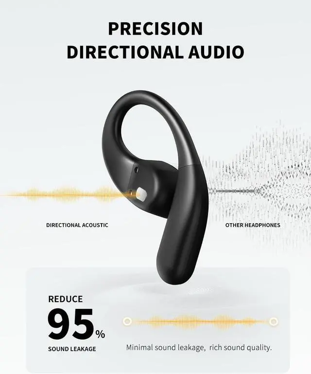 Advanced Directional Acoustic TechnologyThe PSIER Bluetooth headphones utilize pulse directional sound transmission technology to accurately and efficiently deliver sound into the ear. This technology reduces sound leakage by 95% and prevents any embarrassing sound leaks. When you need to relax alone or concentrate on work, you can enjoy music without disturbing your family