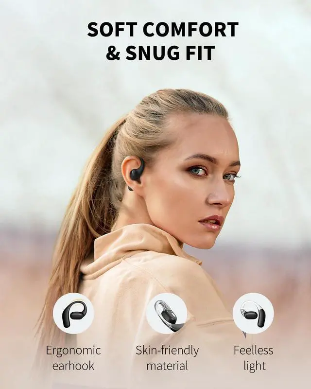 True Open Ear HeadphonesPSIER bone conduction bluetooth headphones are designed to sit around your ear, leaving the inner ear open for a comfortable and secure fit. Constructed from ultra-lightweight and skin-friendly materials, weighing only 13g, you can wear them for extended periods without any discomfort. Say goodbye to ear fatigue and enjoy a sensation-free wearing experience all day long