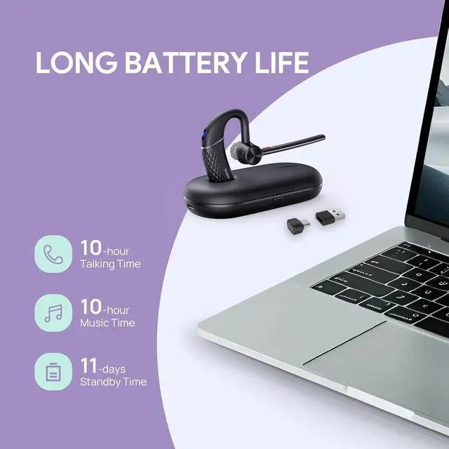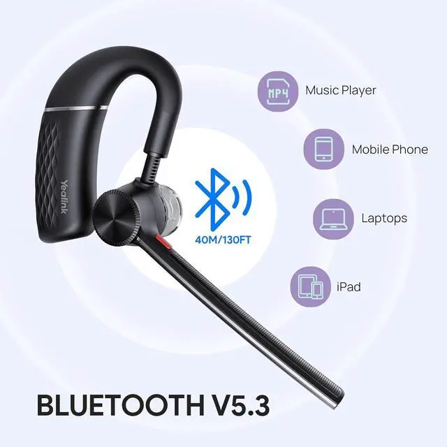 Bluetooth 5.3A dopted Bluetooth 5.2 technology provides you super clear voice for talking. You can move freely with up to a 130ft (40 m) range, which gives you up to 4X the range of other Bluetooth headsets. Fast and easy to pair two devices at once. Compatible with iPhone, Android, tablets, laptops, and other leading smartphones.