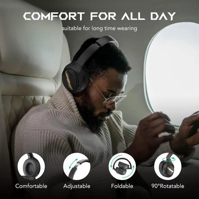 All Day Comfort - Lightweight adjustable headband and soft rotating earpads, wireless headphones can be used comfortably for all day. Black Shark JoyBuds Max are foldable and portable. Easily pack and store your Bluetooth headset when commuting, traveling or are on the go
