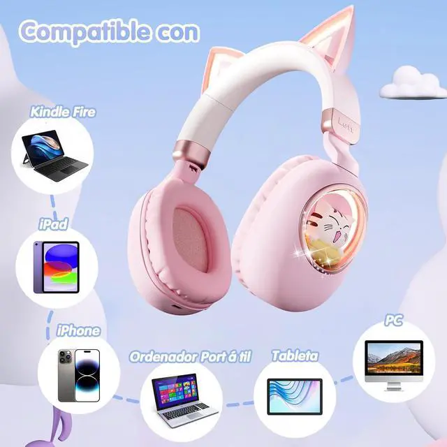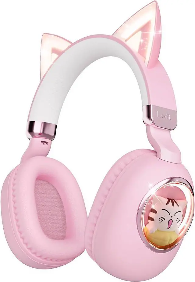 Cute Cat Ear & RGB Lights: Sunvito kids headphones girls feature a unique cat ear shape and adorable cat space capsule earcups that glow with dazzling RGB lights, loved by children; these pink cat headphones make a perfect gift for birthdays, holidays, or back-to-school, stylish and fun, these cat headphones help them stand out from the crowd