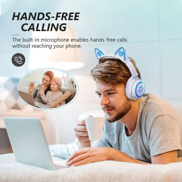 Hi-Fi Stereo HD Mic: The over-ear cat headphones provide clear & hi-fi sound with the noise-reduction mic for immersive listening. Bluetooth 5.0, and mic & volume control buttons enable hands-free phone calls or listening.