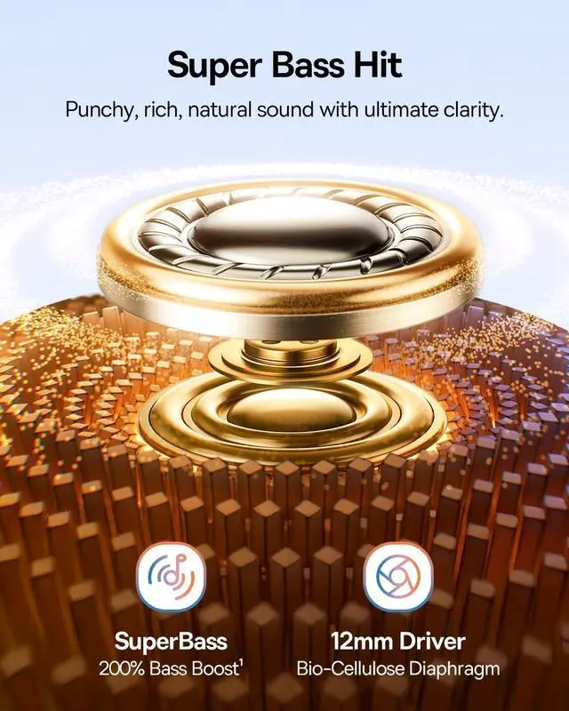 Rich Sound with SuperBass: Hear crisp highs, detailed mids, and deep, punchy bass. Baseus Bass BC1 open ear headphones feature 12mm dynamic drivers, bio-cellulose diaphragms, and AI bass boost for richer sound and crystal-clear clarity. Directional sound delivery ensures minimal sound leakage for private listening