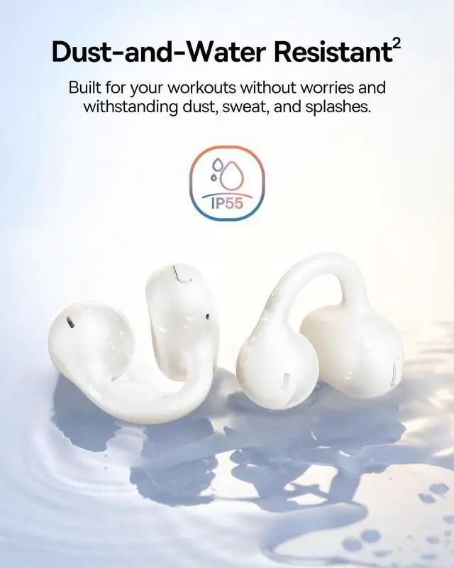IP55 Water Resistant: Built to keep up with your active lifestyle, the Bass BC1 open ear clip on earbuds are IP55 rated to resist dust, water, sweat, and splashes. Perfect for workouts, commutes, and everyday adventures without worries