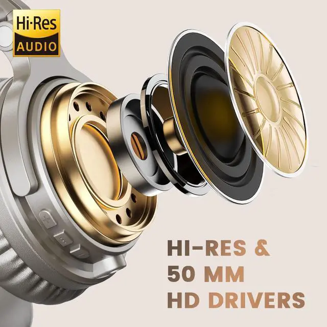 High-Resolution Sound Quality by Professional Audio Team - Our custom-made aluminum fascia and 50mm neodymium drivers provide punchy bass and dynamic stereo sound with clear vocals and crisp high tones. You' ll be amazed by the detailed sound quality when you wear these over-ear headphones