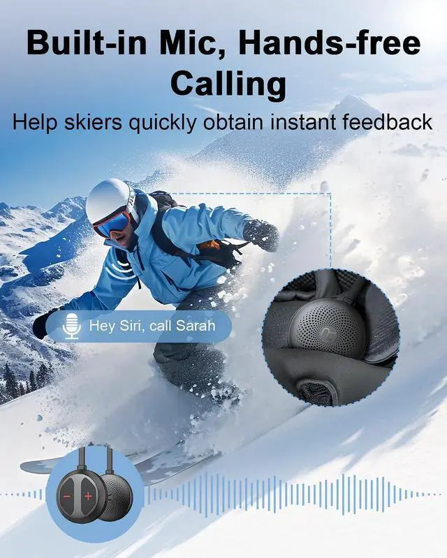 Easy to Use, Larger Buttons DesignAdjusting volume, answering calls, and controlling music playback by skipping or rewinding tracks is user-friendly and straightforward. Larger buttons for easy operation with ski gloves, ideal for activities like Skiing, Snowboarding, Mountain Biking, and Climbing. Perfect for long skiing sessions, they fit comfortably under the helmet.