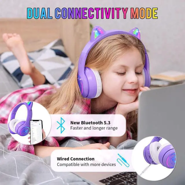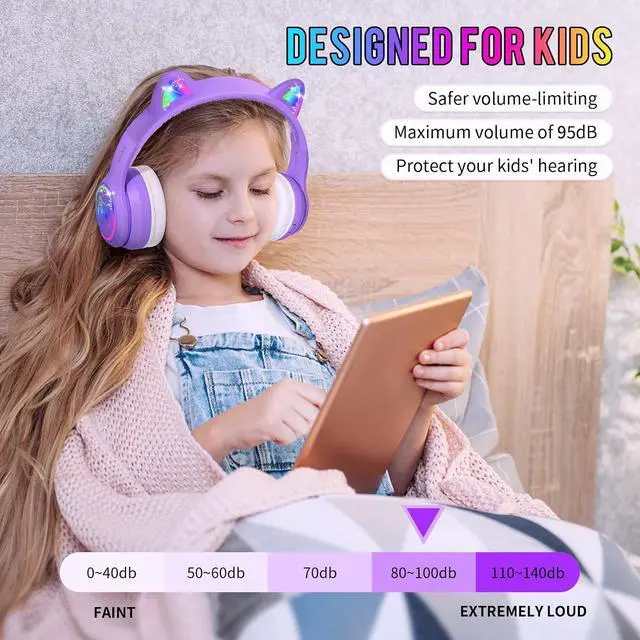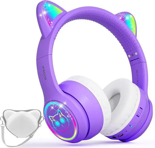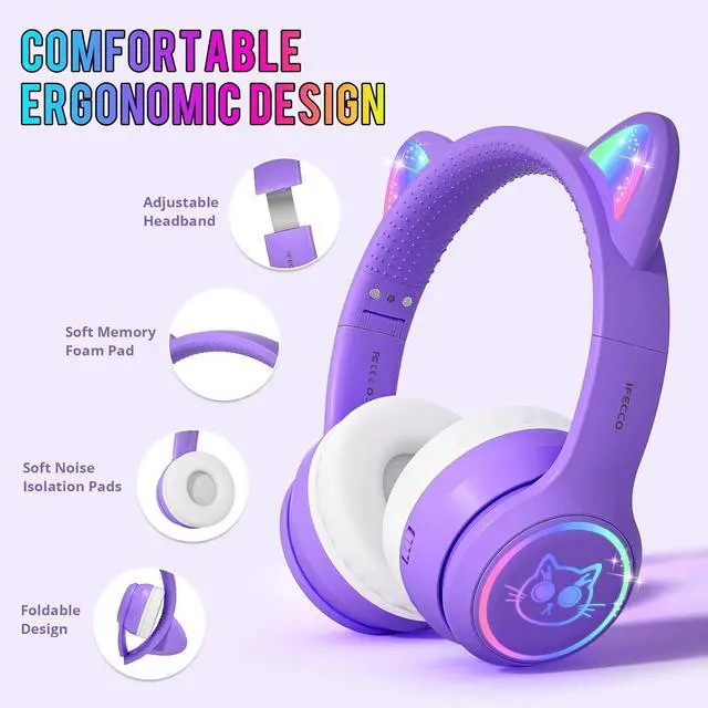 Safer Volume Levels: choose headphones for kids which can keep your kids' s ear not only comfortable but also prtotectd. Ifecco special designed cute cat ear headphones use soft memory-protein foam earpads for a better comfortable fit and volume-limiting circuitry to keep the volume within 95 dBA to protect children' hearing.