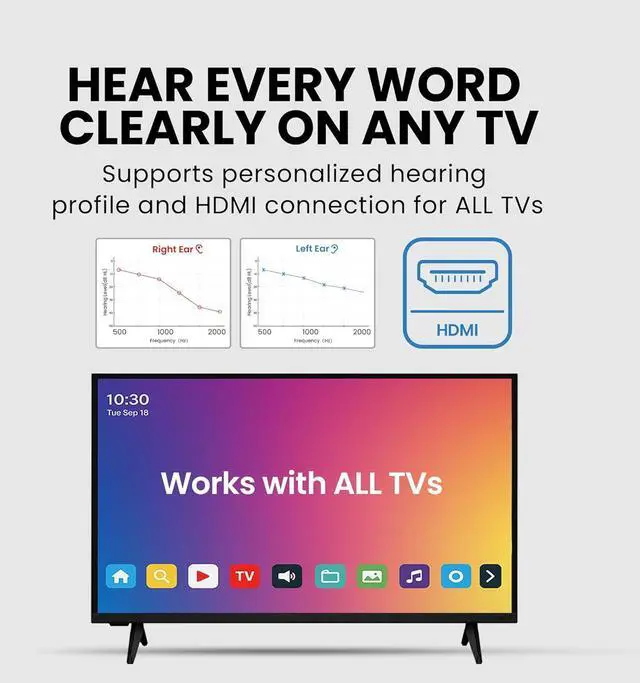 FOR TV Listening with Hearing SupportDesigned for seniors and hard-of-hearing users. Hearing compensation and clear voice tuning focus on TV dialogue clarity, not music-focused or audiophile sound.