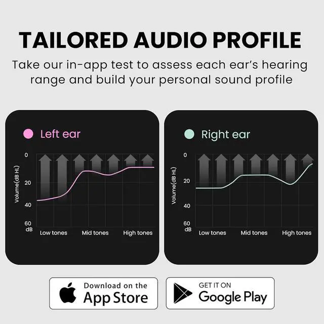 Personalized Hearing Profile per EarThe app tests your hearing and creates a personalized profile, tuning left and right ears separately for more accurate dialogue clarity.