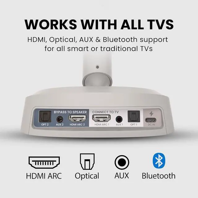 SETUP REQUIREDTV audio output compatibility must be confirmed during setup. Connection takes a few minutes but is essential for proper operation. This is a personal listening solution, not a soundbar replacement.