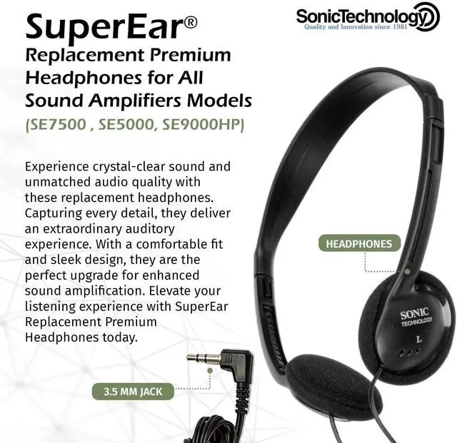 TRUSTED SUPEREAR BRAND: Manufactured by Sonic Technology, a reputable and trusted brand in hearing amplification. These black headphones deliver reliable sound quality for a better auditory experience.