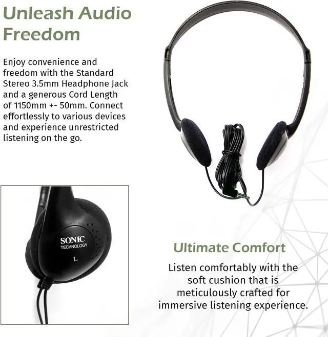 CONVENIENT CORD LENGTH: Featuring a cord length of approximately 1150mm +- 50mm, these sound amplifying headphones offer ample flexibility and freedom of movement. Whether headphones for school or at home or as a voice amplifier for elderly users, they provide the convenience you need.