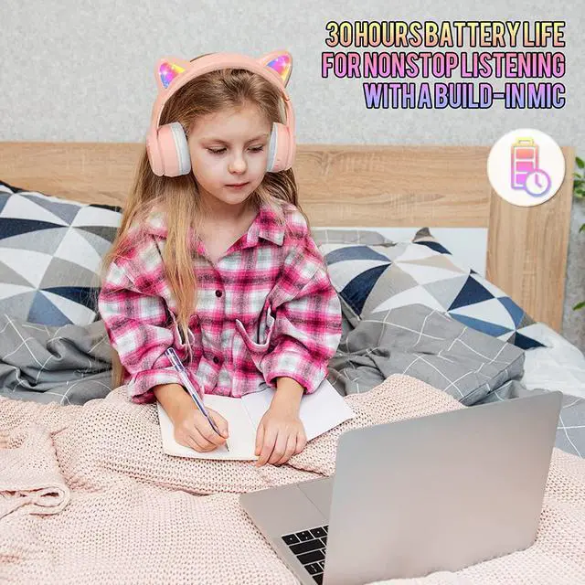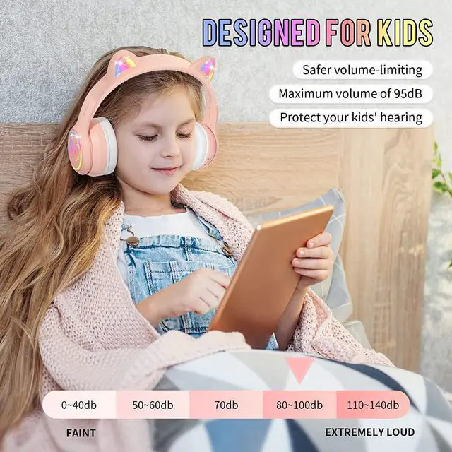 Safer Volume Levels: choose headphones for kids which can keep your kids' s ear not only comfortable but also prtotectd. Ifecco special designed cute cat ear headphones use soft memory-protein foam earpads for a better comfortable fit and volume-limiting circuitry to keep the volume within 95 dBA to protect children' hearing.
