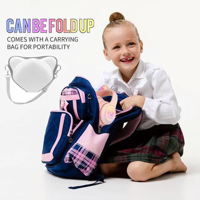 Cute Kids Wireless Headphones with Case: the light up and flash mode make the headphones more interesting and Let your children have the ability to light up the room and shine with the rhythm of the music. We use the reinforced material to prevent these toddler headphones broken easily; A premium bag also inclued for convenient carrying out and protect the foldable headphones no matter spills, accidents, and anything else your kids throw at them;