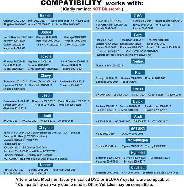 SIMOLIO IR headphones (Not Bluetooth) are compatible with most car DVD systems. For a quick confirmation, please search for your car model in sections of Product Description and Product Image, where surely-compatible models are listed. Be sure to order if your model is listed. If not, pls double check by referring to manual of DVD system.