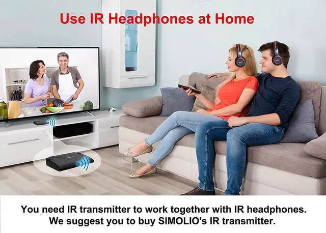 Wireless IR Headset (Not Bluetooth): it is not only a perfect traveling companion for a family car trip, but also can be used with IR transmitter (not included) to enjoy late night TV shows without disturbing your family or kids can leave you a peaceful space by using it to watch their favourite cartoons or play games. If your car DVD has not a built-in infrared transmitter or you want to use these IR headphones for TV watching at home, we suggest to buy our Simolio IR Transmitter for better performance.