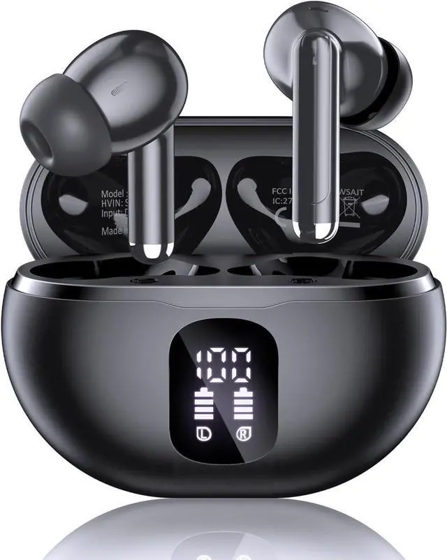 Dual LED Display: Each earbud lasts up to 8 hours on a single charge, and up to 50 hours of playback with the charging case, giving you an exceptional long-lasting experience. In addition, the in-ear wireless Bluetooth headphones are equipped with a smart LED display that visually shows the power level
