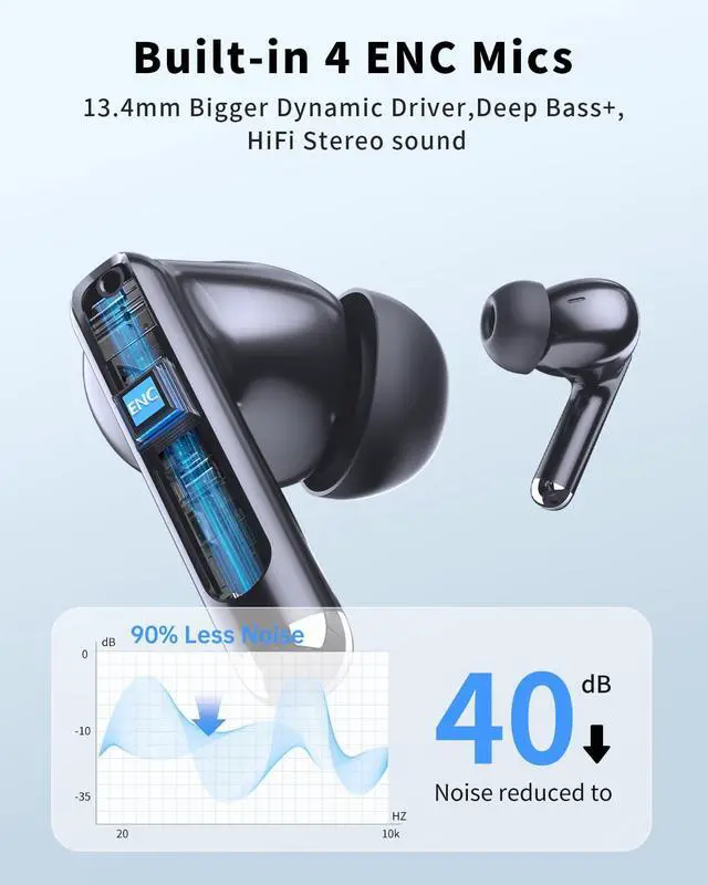 Superior Sound Quality and Clear Calls: The S66 Bluetooth wireless headphone with 13.4 mm graphene diaphragm delivers powerful bass, clear mids and bright highs, and ear buds with dual hybrid ENC microphones passively eliminates 85% of background noise for clearer calls