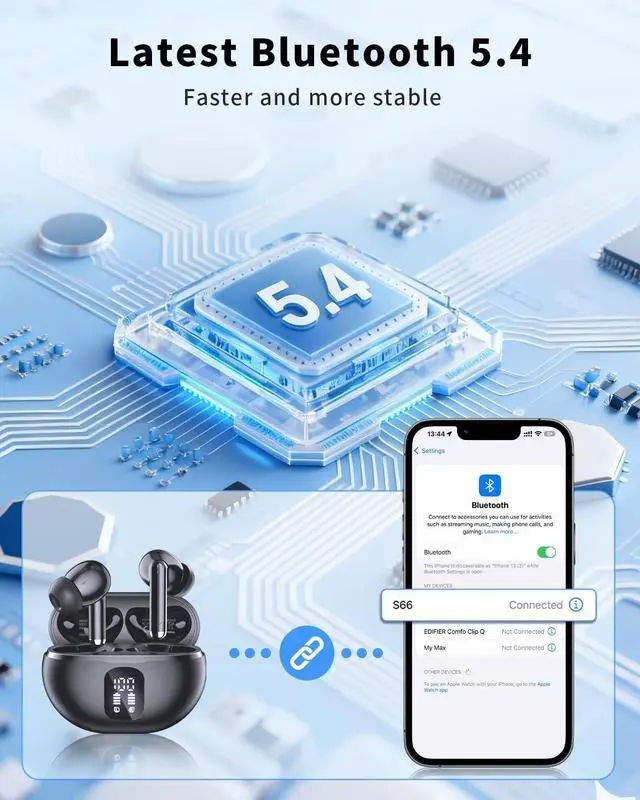 Bluetooth 5.4 and One Step Auto-Prairiing: The wireless earbuds utilize the latest Bluetooth 5.4 technology for more stable transmission and longer range, providing you with an uninterrupted call and music experience. After the first pairing, simply remove both wireless earbuds from the charging case and they will pair automatically
