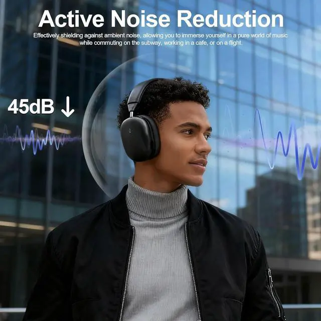 Active Noise Cancelling Headphones for Work & Focus - These wireless over ear headphones feature Active Noise Cancelling (ANC) to reduce ambient noise in offices, cafés, and daily commuting. Ideal noise cancelling headphones for work, study, and focused listening without distractions
