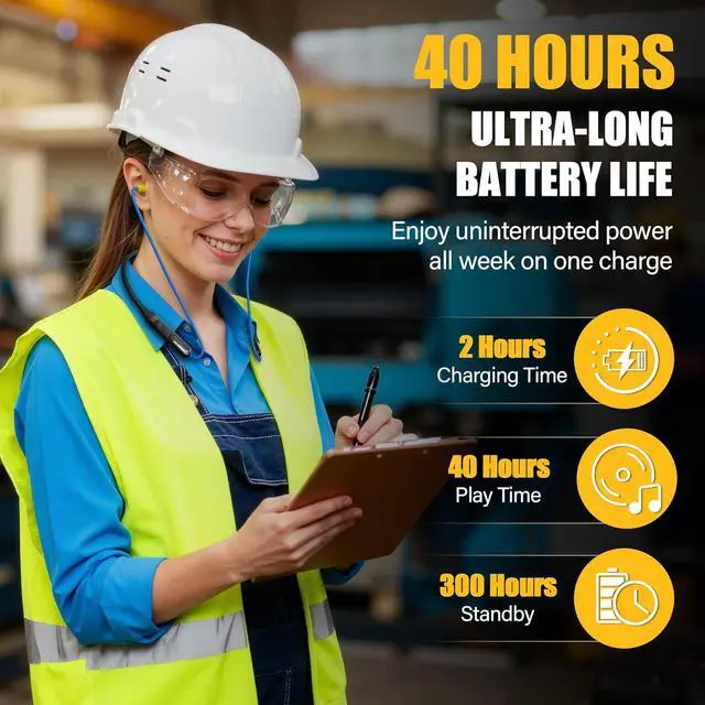 40-Hour Ultra Long Battery Life: Outlast Your Longest Shift. While other earplug headphones quit after 1220 hours, AUWAV delivers 40 hours of continuous playtime. Built for overtime, double shifts and multi-day jobsno daily charging needed. Work longer, skip frequent recharges, and focus without interruption. Ideal for construction, landscaping, manufacturing and industrial workers who demand reliability from sunup to sundown. The reliable choice in bluetooth work headphones