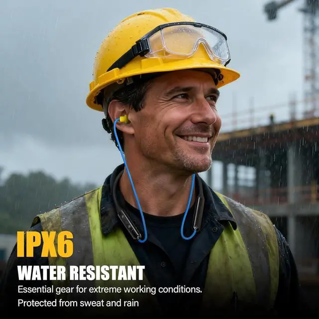IPX6 Waterproof & Protective Case: Built for Extreme Conditions. Superior IPX6 rating shields these noise-canceling earbuds from heavy sweat, rain, and dust. Thrives on demanding job sitesconstruction, machine shops, lawn mowing. Delivers reliable performance in any weather. Includes a compact protective case for easy storage and carry