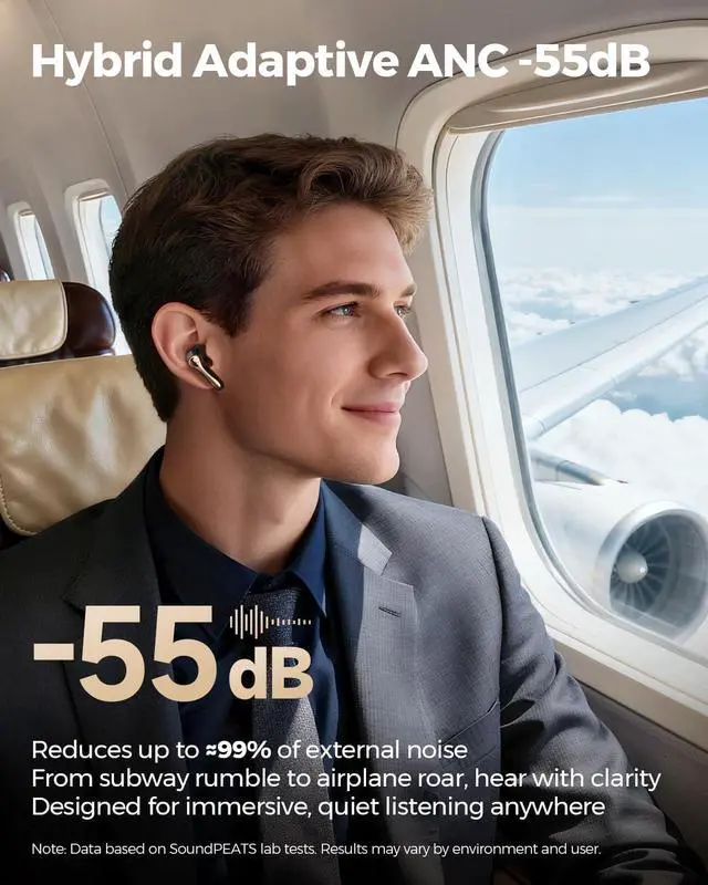 Your Own Quiet World & A Pure, Noise-Free BackgroundThe world on one side, music on the other and in between, a sea of silence that belongs only to you. 55dB Adaptive Hybrid ANC intelligently identifies and cancels external noise while preserving what you want to hear. Enhanced with metal shielding and anti-noise design, it eliminates circuit hiss-those faint currents of noise are gone for good. Equipped with 6MIC AI Call Noise Cancellation, enhanced by the latest acoustic algorithm, and wind-noise resistance, your voice is captured accurately and delivered purely, even on windy streets or busy roads. Now, whether immersed in music or taking a call, you hold full sovereignty over sound.