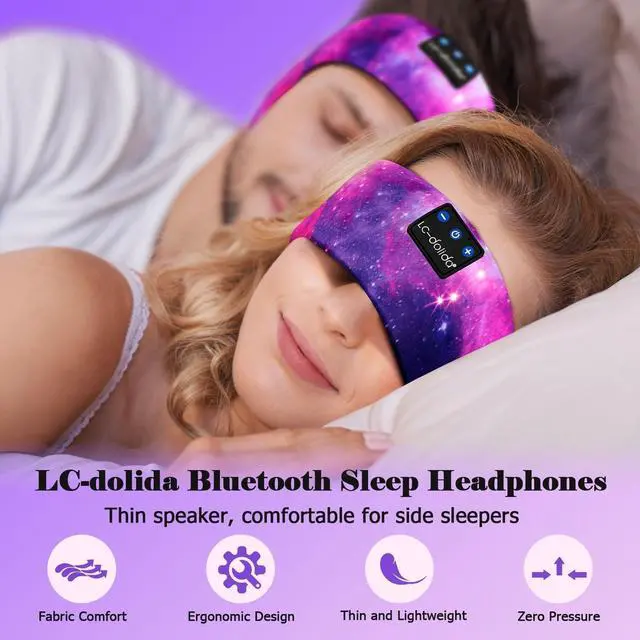 Sleep Headphones Wireless Bluetooth LC-dolida Sleep headphones Bluetooth headband headphones integrate the earpieces into a soft fabric headband for extra comfort and the speakers are so thin that you can' t feel them even if you press your head against the pillow, perfect sleep headphones for side sleepers. Choose LC-dolida sleep headphones to keep you away from noisy environments and have a sweet dream.