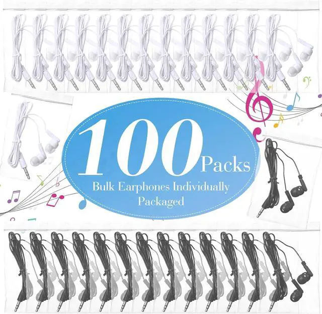 Earbuds Bulk: you will receive 100 packs of wired headphones in individual package, available in black and white color, enough for class students to choose their favorite or share with others;
