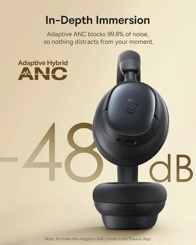 Immersive & Personalized Listening: Experience lifelike sound that surrounds you with Baseus Immersive Spatial Acoustics (BISA). SoundFit technology of the over-ear headphone adapts audio to your unique hearing profile, delivering a custom-tuned listening experience made just for you.