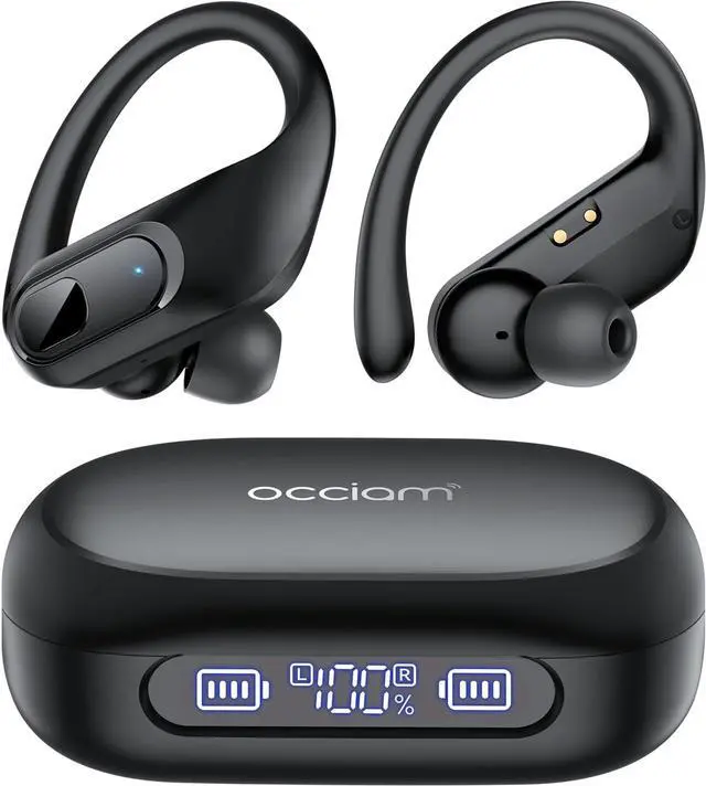 3. Ergonomic Anti-Slip DesignThe ergonomic sport earbuds with flexible ear hooks fit snugly, staying put during runs, jumps, or yoga (top anti-slip running headphones). Soft silicone ear tips and a humanized design ensure long-term wear is pain-free and pressurelessno discomfort even after all-day use. The earbuds are sweatproof and rain-resistant, easily handling workout sweat and sudden raindrops, perfect as waterproof earbuds for gym yoga.