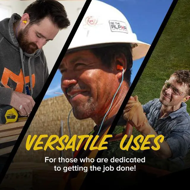 DURABLE WORK EARBUDS FOR LONG SHIFTS: Made for industrial use, these earplug headphones are sweat-resistant and feature a double-reinforced audio jack. Trusted by professionals for reliable performance during construction, landscaping, manufacturing, and more.