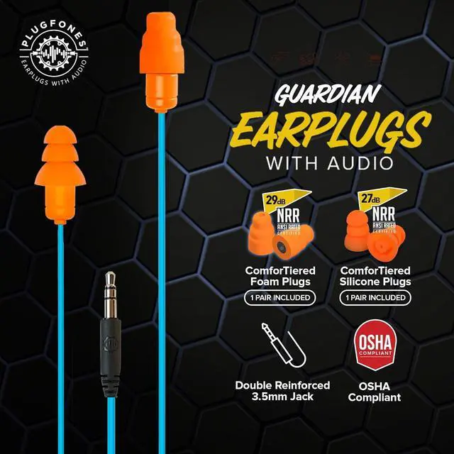 27-29dB NRR OSHA-COMPLIANT NOISE REDUCING EARPLUG HEADPHONE EARBUDS: Enjoy the perfect blend of hearing protection and high-quality audio. These earplugs feature ANSI-certified NRR of 27 & 29 dB, making them OSHA approved for use in noisy work environments.