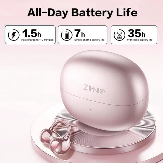 35-Hour Playtime: Never pause your rhythm. With the included charging case, Zihnic clip-on earbuds provide up to 35 hours of playtime on a single chargeideal for long flights, workdays, or weekend adventures.