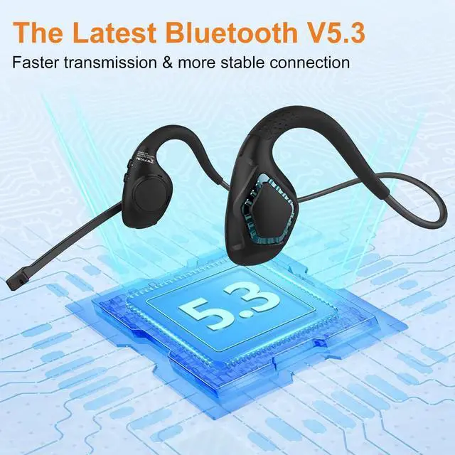 Latest Bluetooth V 5.3 & Stable ConnectionThis wireless headset adopts the latest Bluetooth V 5.3, brings a stronger, faster and more stable connection with iPhone/Android cellphone/iPad/Mac/Tablets/PC. Transmission distance is up to 33 ft without large obstacles in between. It can be paired with two Bluetooth devices and answer calls or play music from either device