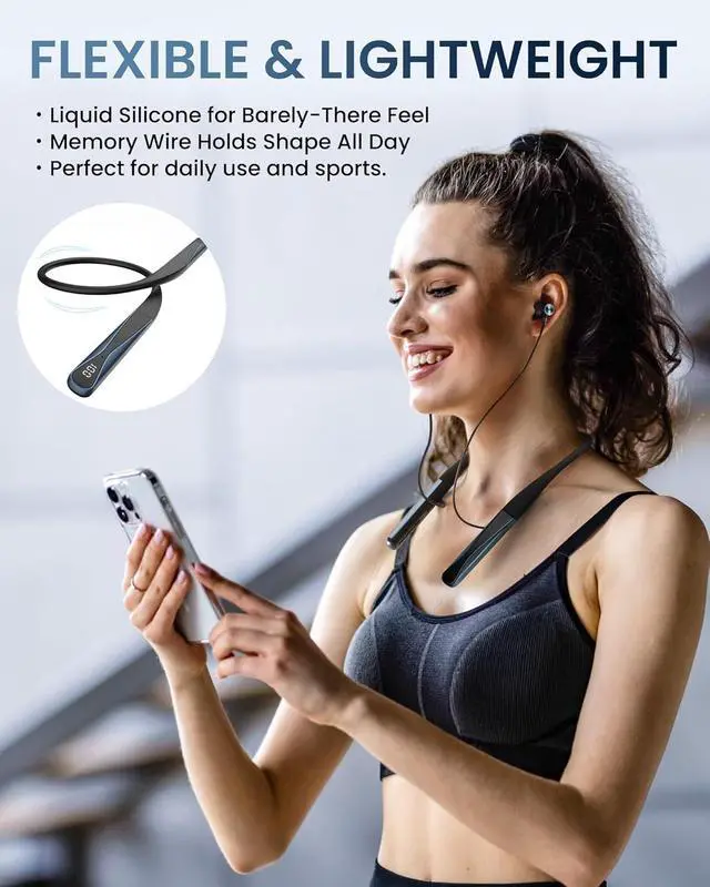 Comfort Fit & Magnetic Design Stay secure & tangle-free. Move freely without fumbling with loose earbuds; the soft neckband, ergonomic arc shape, three ear tip sizes, and magnetic snap keep them secure and easy to stow. Tested on 50 HIIT workouts and 10 climbs, they stay put and feel comfy the whole time.