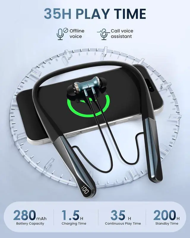 Bluetooth 5.4 & Long Battery No dropouts or dead batteries on the go. Stay connected and powered through every commute and workout with Bluetooth 5.4 that pairs instantly, stays stable, and uses less energy. Get up to 35 hours of playtime or calls and 100 hours on standby, so you can go 3 days of 6hour commutes plus weekend runs without ever needing to recharge.